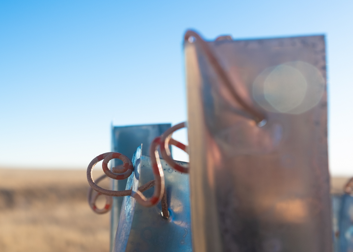 The materials for these objects hung around my studio for a long time (maybe a few years?), just waiting to signal what they were to become. They finally let me know, and just after I’d made several objects with the rusted steel and copper the WYNMWA opportunity came along. I created land installations with these objects for the film.