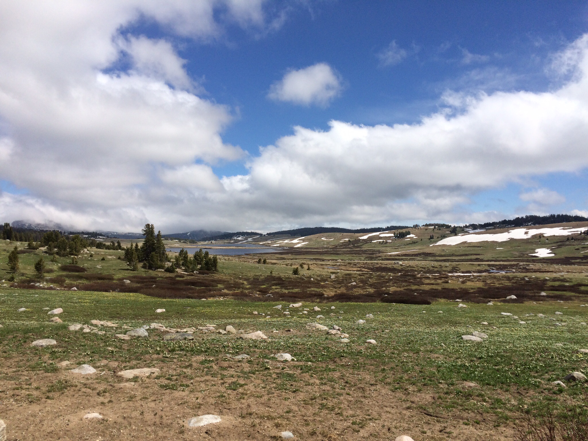 The highway is full of switchbacks for travelers to climb and descend the mountains, and it passes through beautiful alpine meadows, but being in the clouds prevented us from enjoying the sweeping vistas of Wyoming and Montana the route is known for.